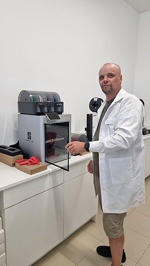 Volodymyr Deineka focused on mastering 3D bioprinting techniques using MXene-filled bioinks. The training involved printing both simple and complex 3D structures and evaluating their mechanical and biological properties. This work contributes to the development of smart, bioactive scaffolds for tissue engineering.