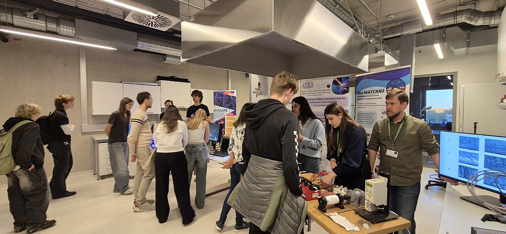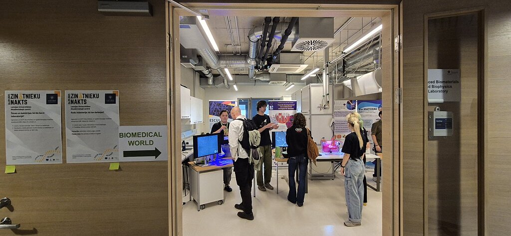 As part of this initiative, the University of Latvia, together with partners of the ESCULAPE project, showcased ongoing research focused on electroconductive polymeric scaffolds, electrospinning technologies, and nanofiber-based materials for advanced biomedical applications.