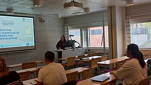 The presentations were delivered to Professor Marjukka Kolehmainen, Dr. Jenni Korhonen, and members of the Institute of Public Health and Clinical Nutrition at UEF. The researchers presented their progress on the development of MXene-based electroconductive scaffolds for biomedical applications.
