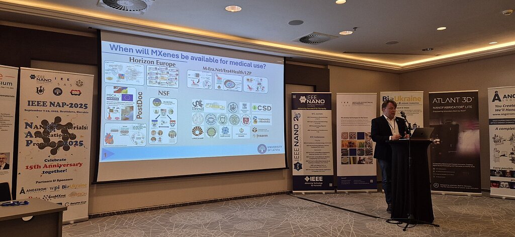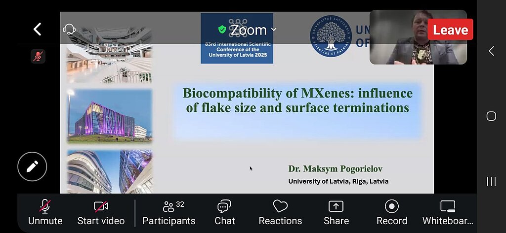 Students and PhD candidates from the University of Latvia, Vilnius University, and Sumy State University presented posters showcasing the physicochemical, electroconductive, and biological properties of MXenes.
