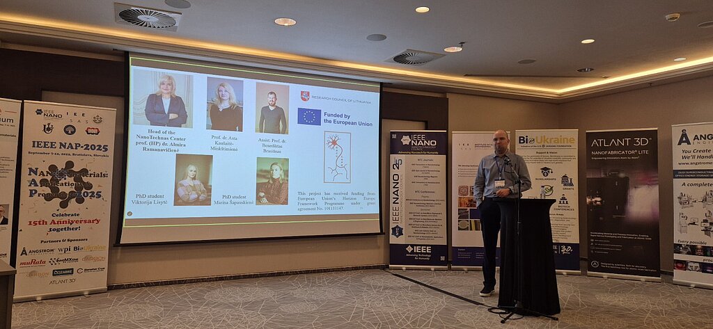 The partners of the ESCULAPE project actively participated in the MXene Symposium held within the framework of the NAP 2025 conference in Bratislava, Slovakia, September 7–12, 2025. Maksym Pohorielov and Viktoriia Korniienko (University of Latvia), Arunas Ramanavicius and Almira Ramanavičienė, Anton Popov (Vilnius University), Igor Iatsunskyi(Adam Mickiewicz University), Albano Meli (INSERM, France), Sanjiv Dhingra (University of Manitoba) and Sergiy Kyrylenko (Sumy State University) delivered talks presenting the results of research on MXene properties carried out within the project’s work packages.