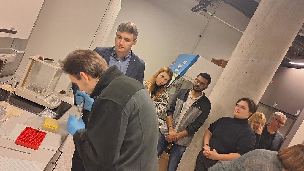 A few practical sessions during secondment period, led by Ivan Baginskiy, provided participants with a valuable opportunity to gain hands-on experience in the manipulation and handling of MXenes. During this session, attendees were introduced to essential techniques and protocols for working with MXene materials, including their preparation, dispersion, and stabilization. The session also covered methods for integrating MXenes into experimental setups for biomedical applications, ensuring that participants could directly apply these techniques in their research.