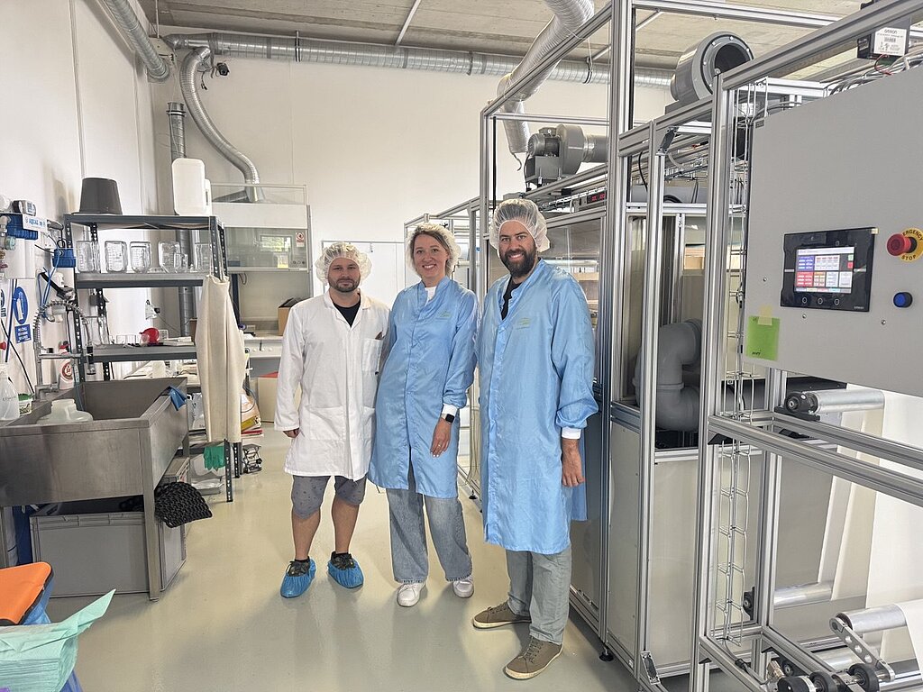During the secondment visit(Mykola Pavlenko,Andriy Lys) , a comprehensive scientific training program was conducted, focusing on factory-scale nanofiber production. Company representatives provided demonstrations of their production processes and discussed common challenges encountered in electrospinning. This training offered unique insights into the behavior of various polymers within polymeric solutions. Multiple dissolvers were tested to highlight differences in polymer solubility and behavior during electrospinning.